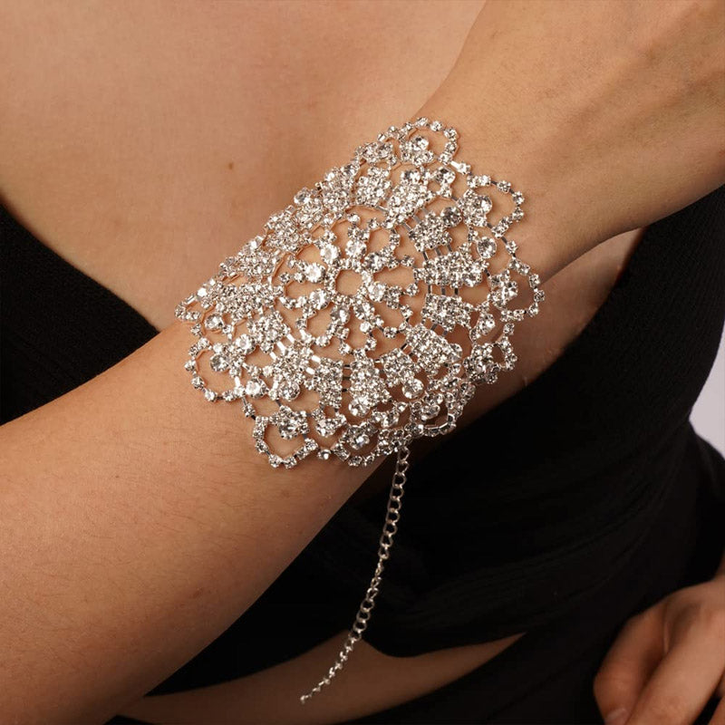 Stonefans Rhinestone Flower Wrist Bracelet – Adjustable Arm Chain Cuff Jewelry for Women, Party Accessories
