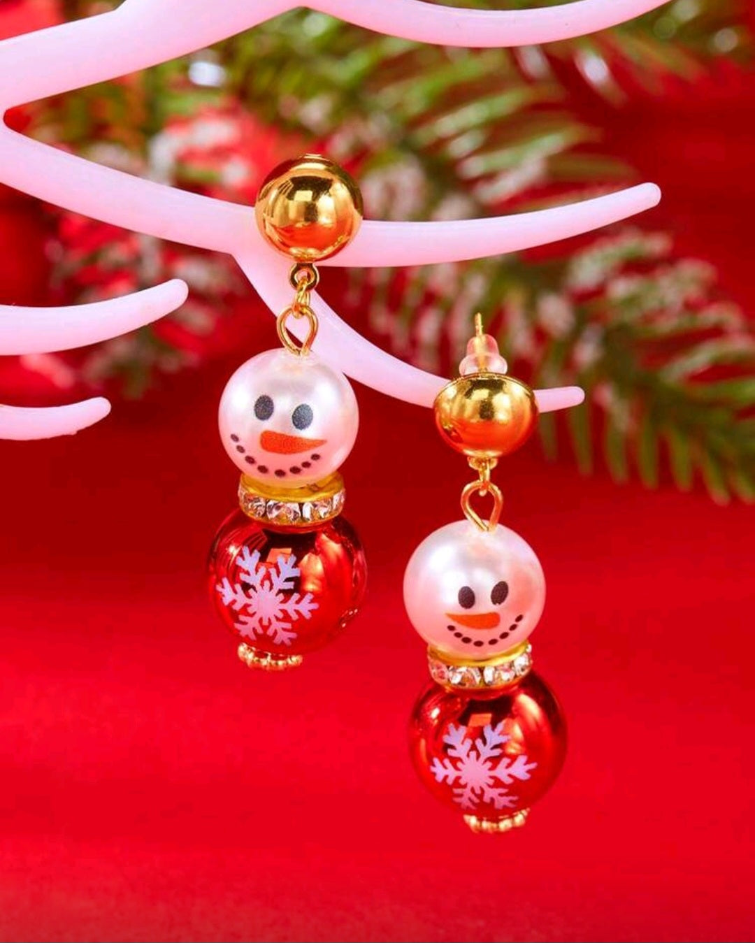 ● 1 pair of cute Christmas snowman pendant earrings