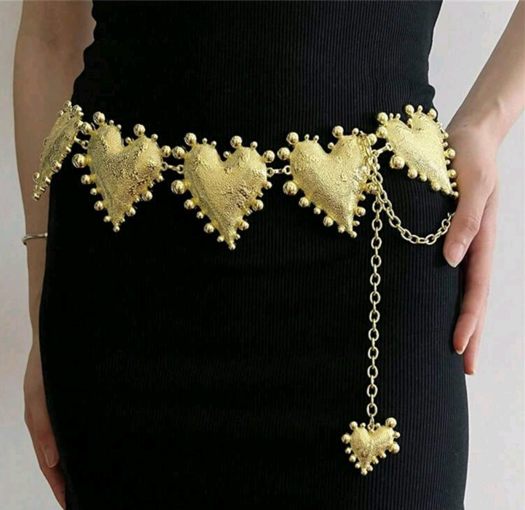 Crafted from high-quality metal, the belt is durable yet lightweight, making it comfortable to wear over dresses, skirts, or high-waisted outfits. Its adjustable design ensures a perfect fit for different waist sizes, while the eye-catching heart tassel detail adds a romantic and festive flair.
