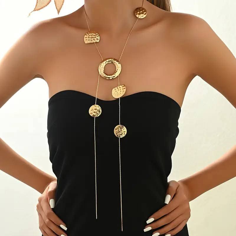 Design: Long necklace featuring multiple circular pendants for a layered, elegant look