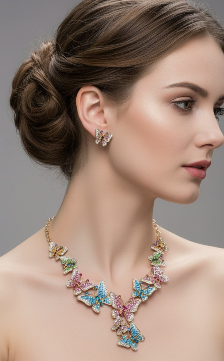 • Elegant butterfly statement necklace adorned with sparkling crystal accents