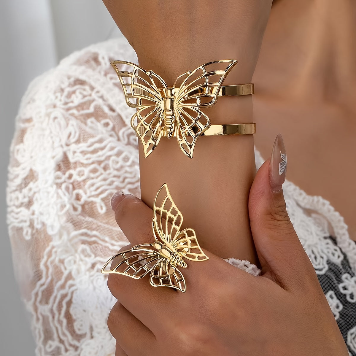 Butterfly Ring and Bracelet Set