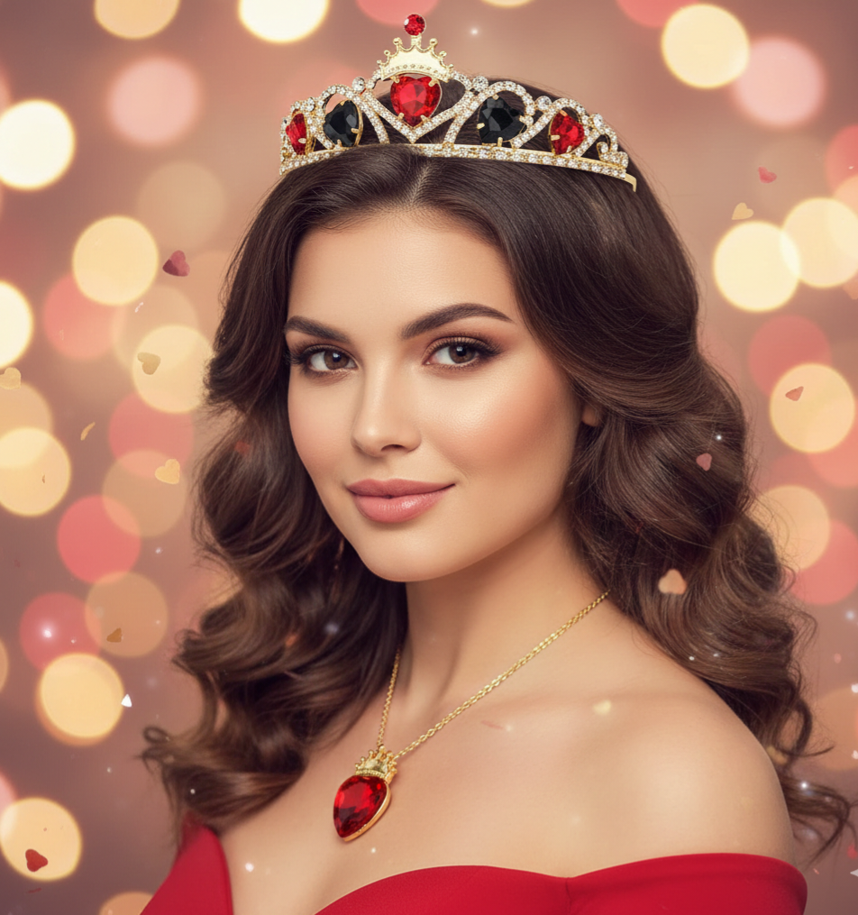 Design: Inspired by Descendants 4: Rise of Red, this red crown features black heart accents, perfectly capturing the Queen of Hearts aesthetic.