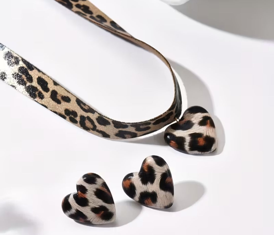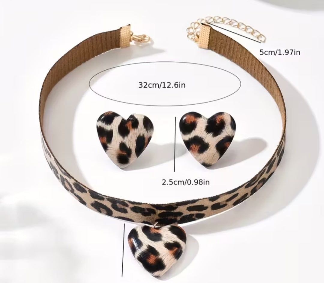 A bold and stylish jewelry set featuring a tiger-inspired heart choker necklace paired with matching heart-shaped tiger earrings. Designed for women who love statement accessories with a fierce and fashionable edge.