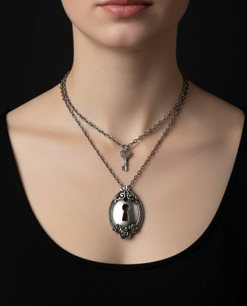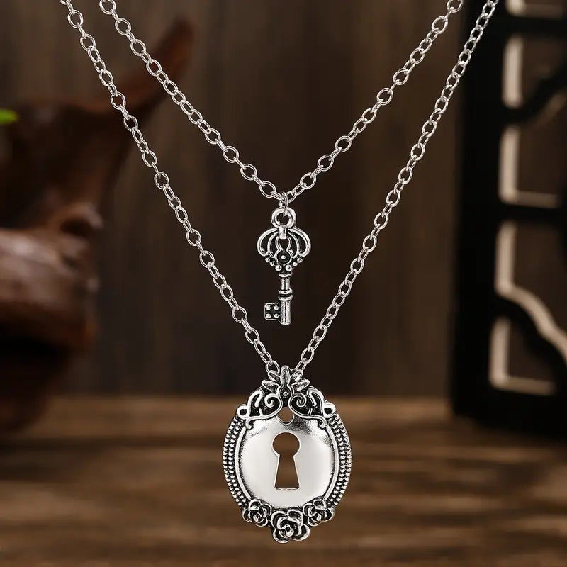 Lottie- the Lock and Key Pendant Double Chain Necklace