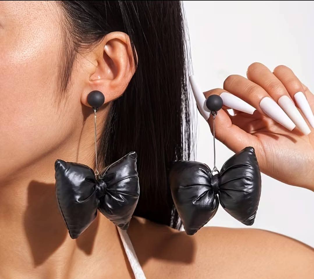 Home/Earrings/Black Bow Drop Earrings – Chic Statement Fashion Jewelry