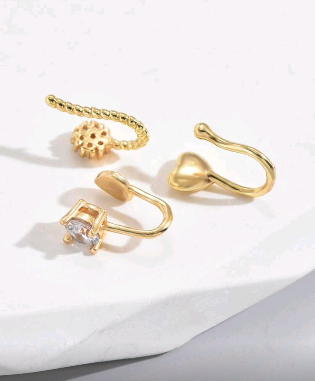 Home/Piercing/3pcs/Set Heart & Cubic Zirconia Decor Nose Cuff Unisex Fashion Punk Body Piercing Jewelry Valentines,Mom,Mother,Mother's Day,Gift