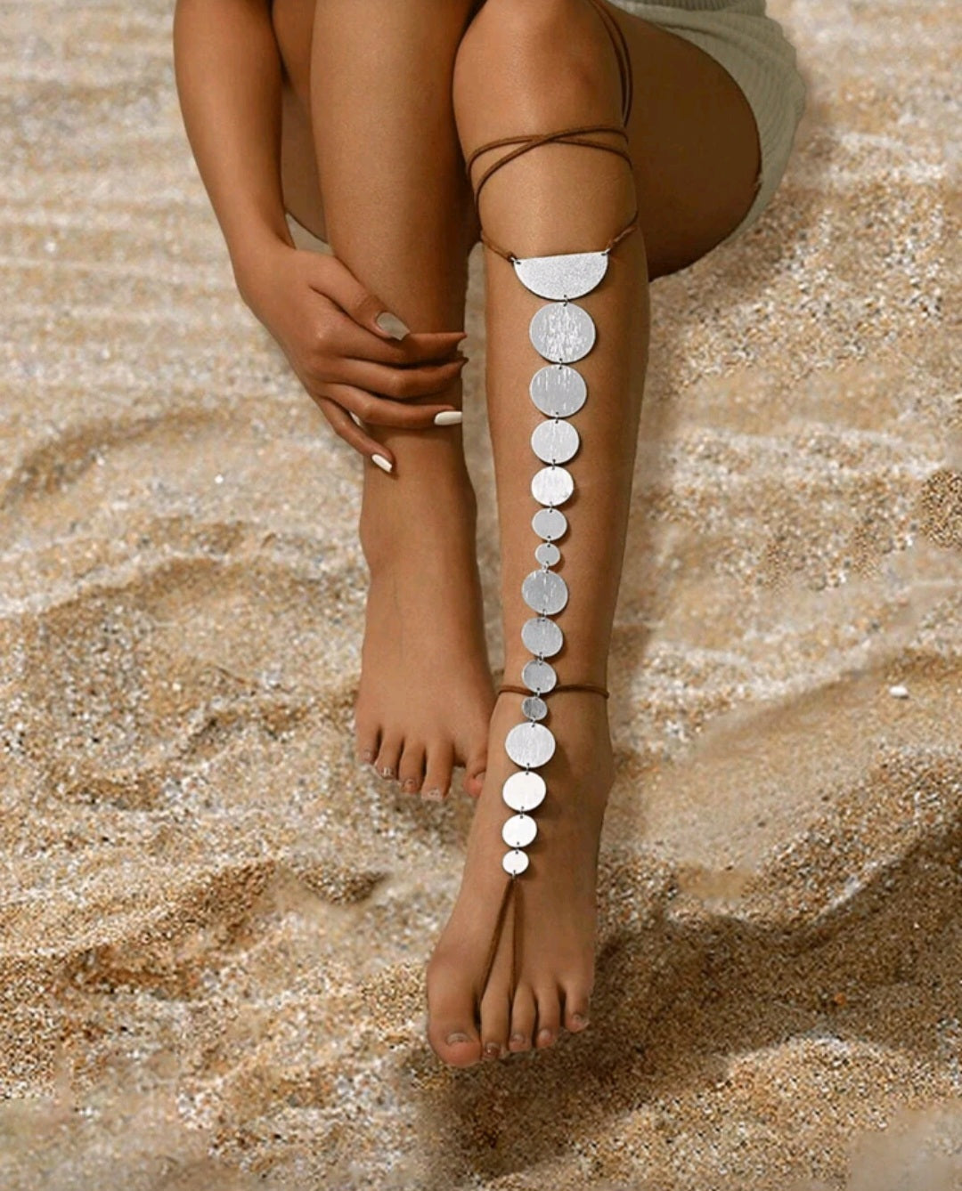 1pc Gold Fashionable Metal Style Geometric Circle Linkage Cord Tie Leg Link Toe Anklet Beach Style