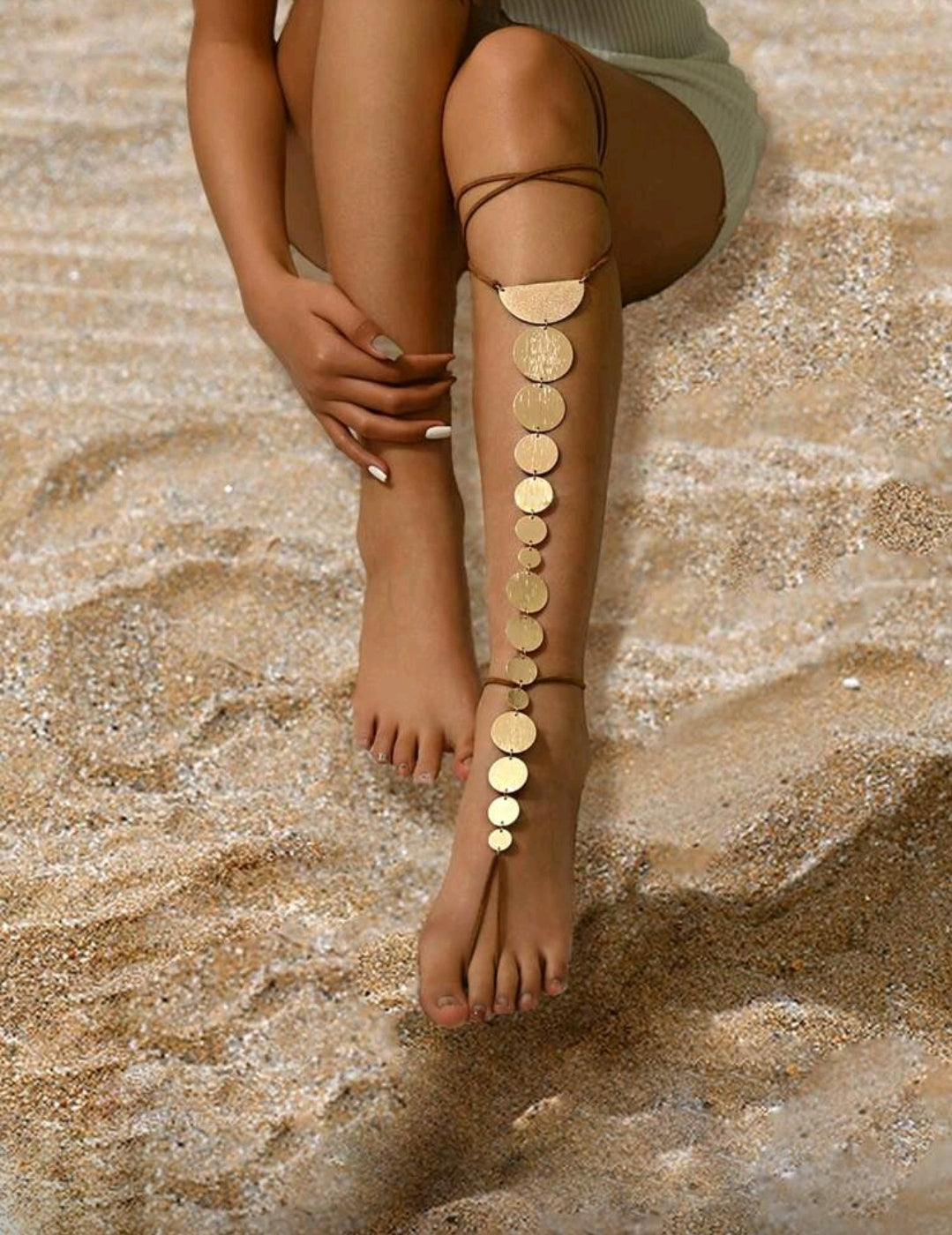 Home/Anklet/1pc Gold Fashionable Metal Style Geometric Circle Linkage Cord Tie Leg Link Toe Anklet Beach Style