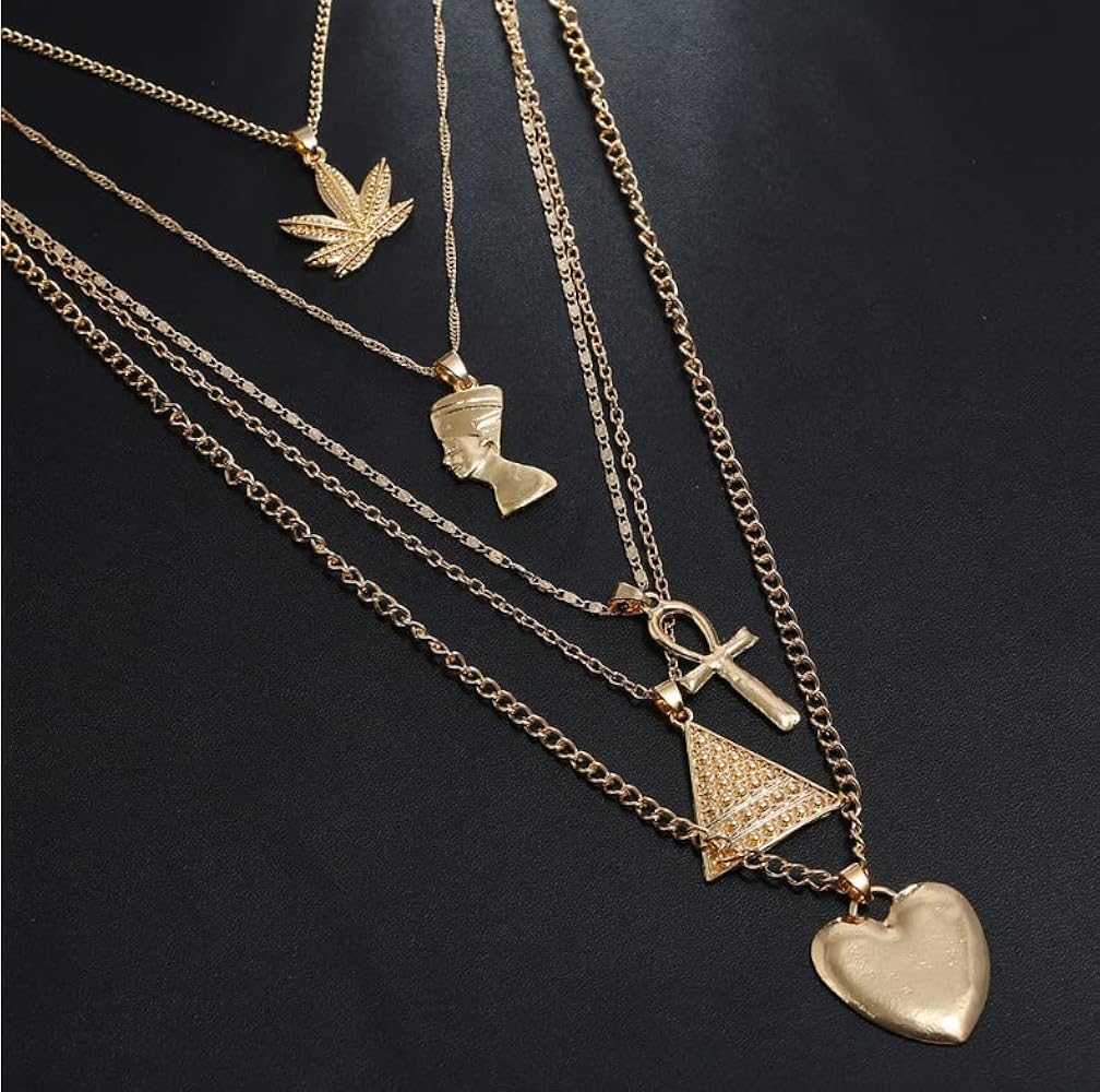 ACEDRE Boho Layered Pendant Necklace Gold Egyptian Heart Necklaces African Costume Chain Jewelry for Women