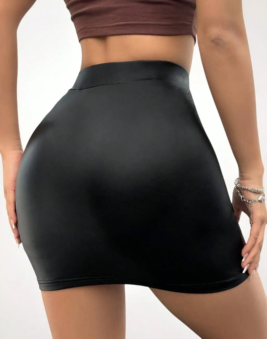 SHEIN Coolane Zipper Pu Leather Wrap Bodycon Mini Skirt