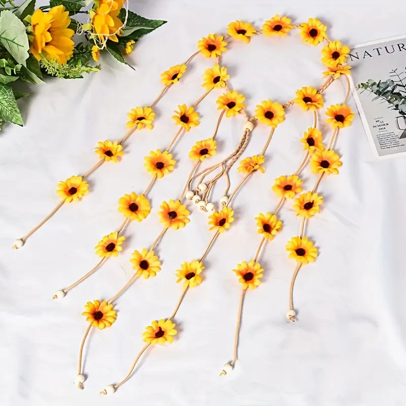 Set Includes: 8 pieces of sunflower-themed hair accessories, including headbands, hairpins, and a flower wreath.