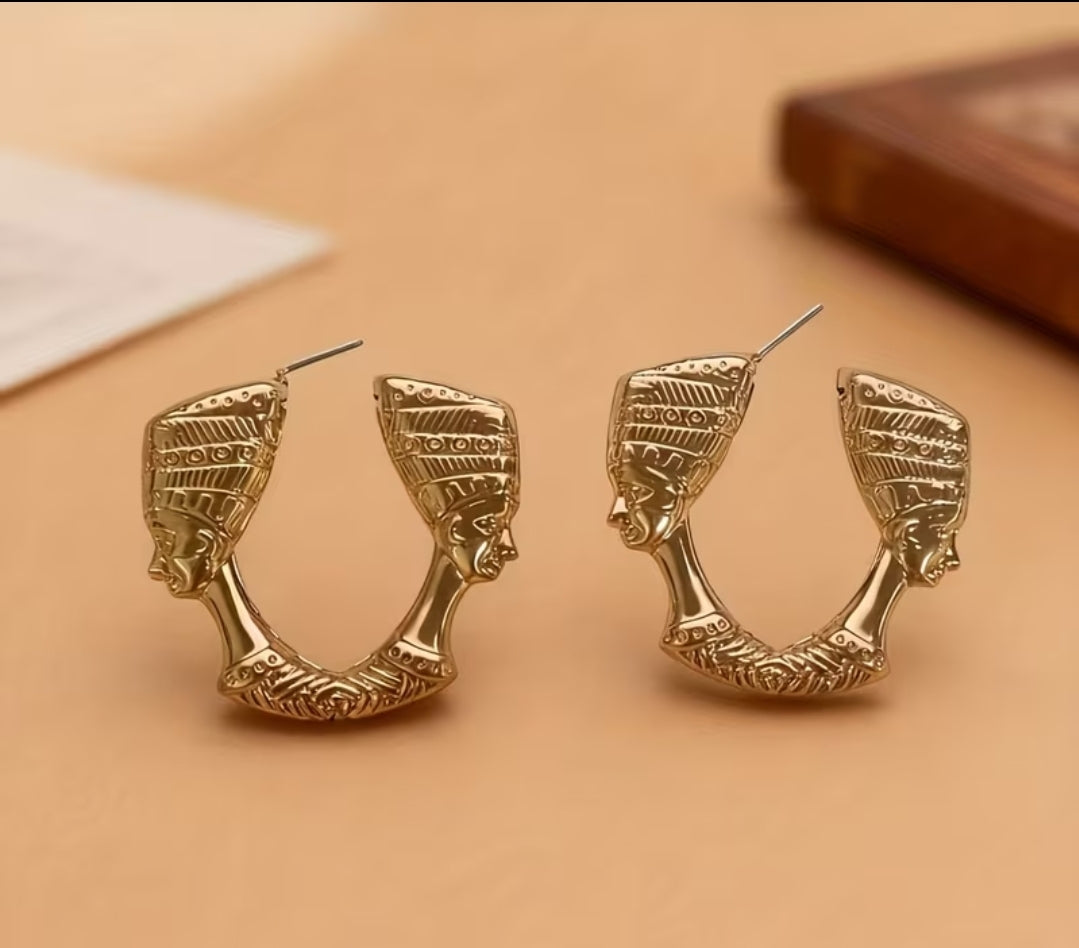 Make a powerful style statement with these Golden Pharaoh Face Statement Earrings, inspired by the elegance and mystery of ancient Egyptian queens. Designed with intricate engraved details, these bold earrings reflect strength, luxury, and timeless femininity.
