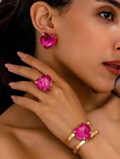 Home/Valentine’s Accessories/Pink Stone Jewelry Set – Bracelet & Ring with Earrings | Minimalist Fashion Accessories | Trendy Party Gift 2025