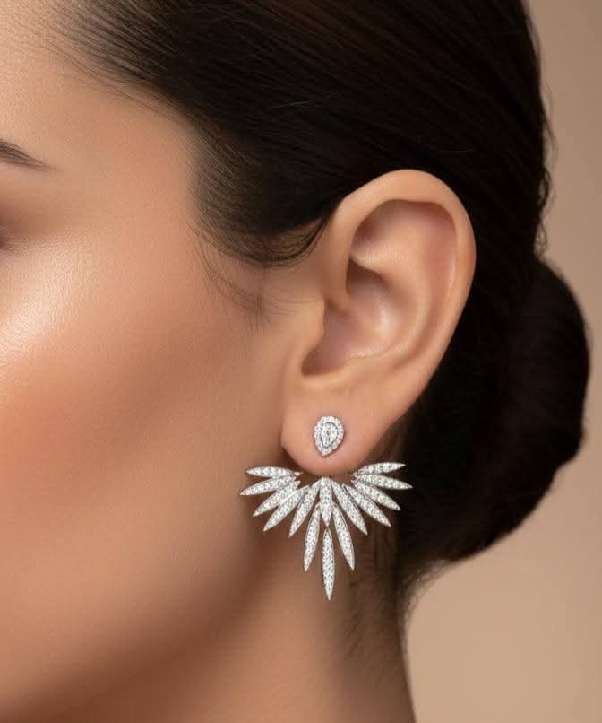 Elevate your style with these elegant Diamond Feather Ear Jacket earrings, designed to add a touch of luxury and modern sophistication to any look. Featuring a graceful feather-inspired shape adorned with sparkling diamond-like stones, these ear jackets create a layered effect that beautifully frames the ear. Perfect for both everyday wear and special occasions, they offer a unique blend of glamour and contemporary fashion.