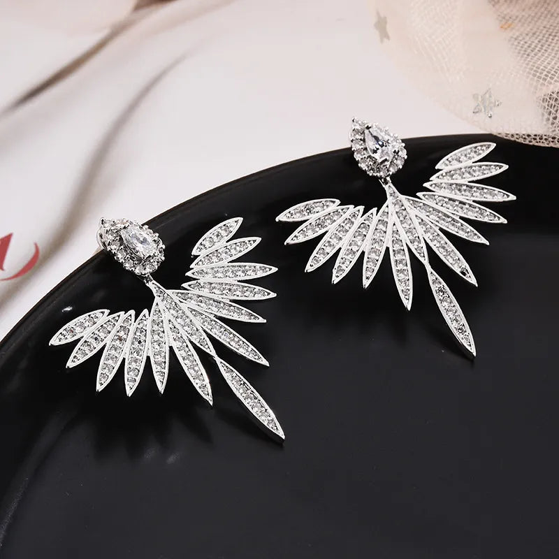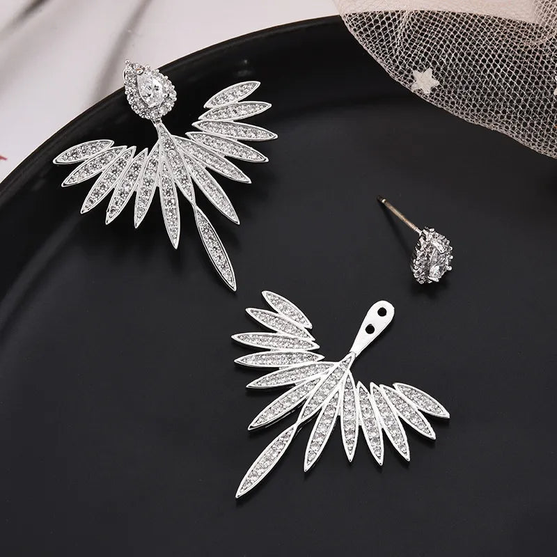 Design: Feather-shaped ear jacket with diamond-style embellishments