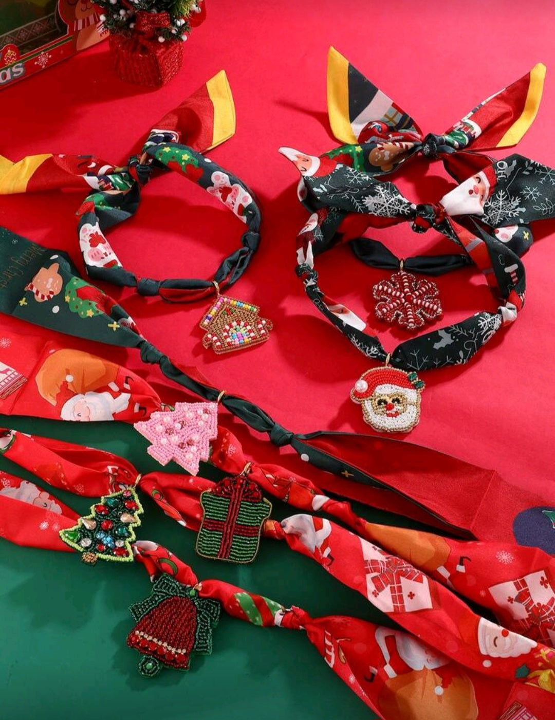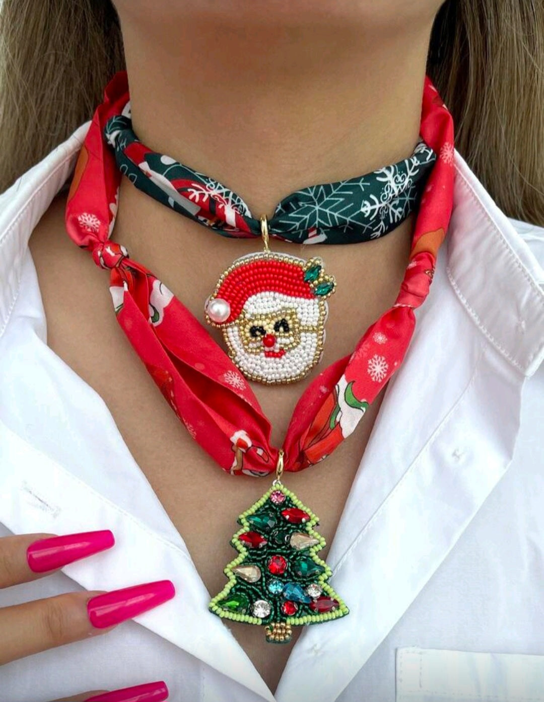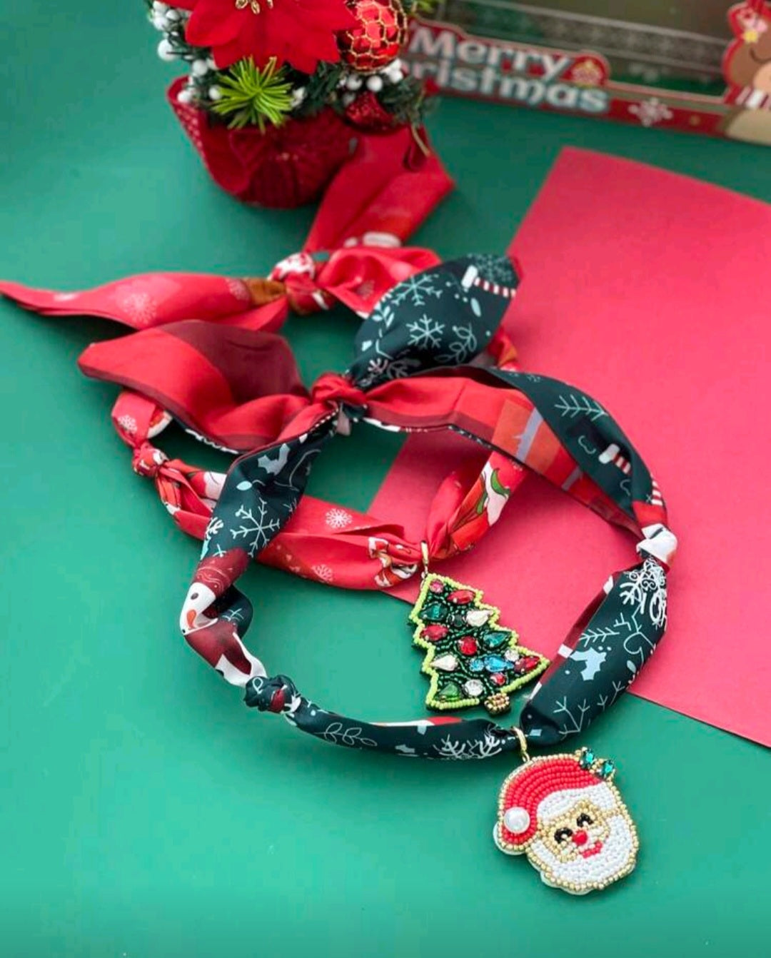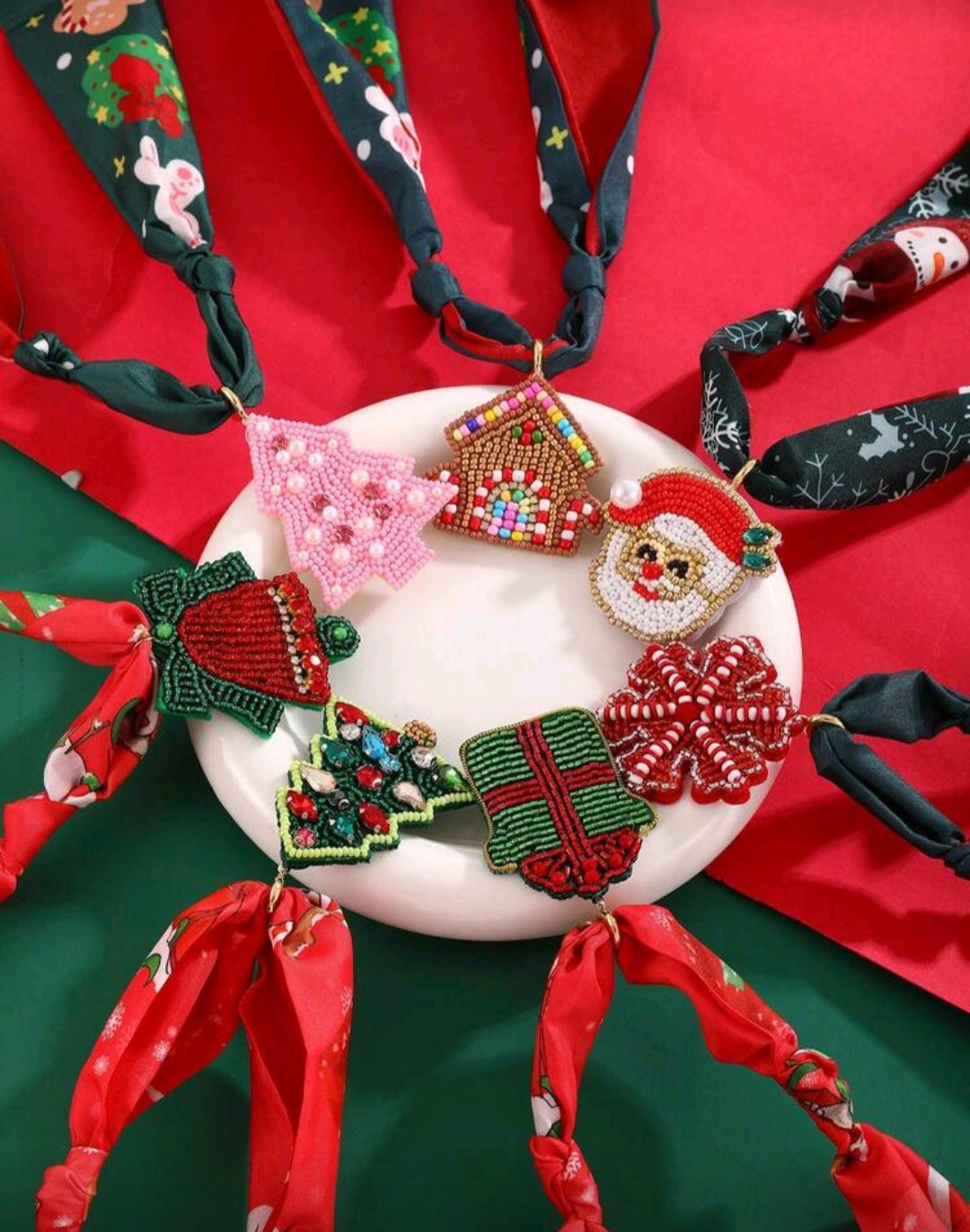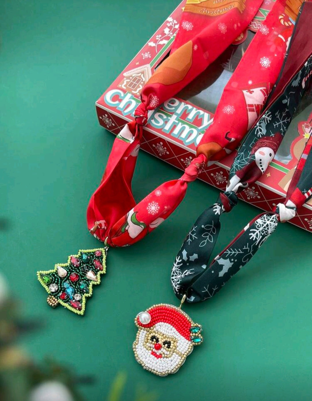 Home/All Products/1pc Christmas Bohemian Style Creative Fashion Elegant Exquisite Pearl Christmas Tree Santa Claus Printed Fabric Necklace Women's Sisters Couples Jewelry Gift, Suitable For Daily Dates Parties Holidays Gift Giving Wear Rhinestone Colors Are Randomly Select